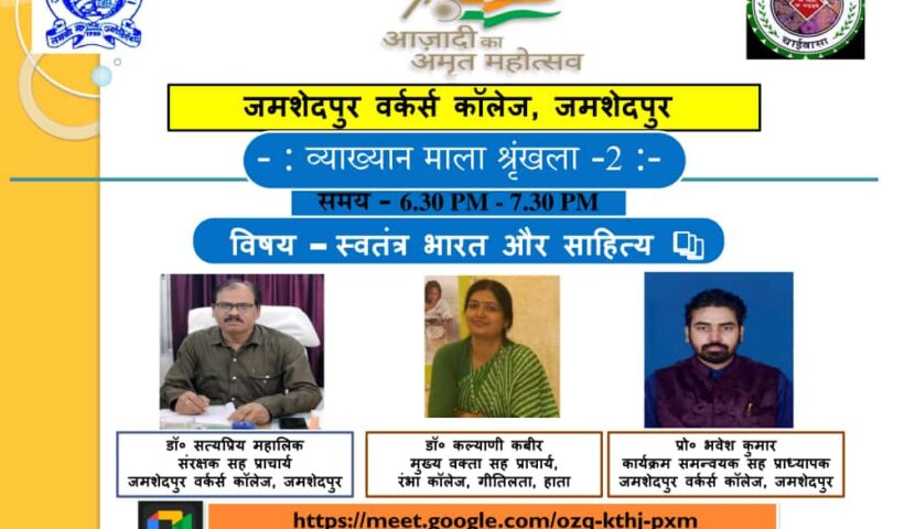 जमशेदपुर (संवाददाता ):-वर्कर्स कॉलेज, जमशेदपुर द्वारा आजादी का अमृत महोत्सव बड़े धूम-धाम एवं हर्षोल्लास से मनाया जा रहा । इस निमित्त महाविद्यालय प्रशासन द्वारा नित्य…