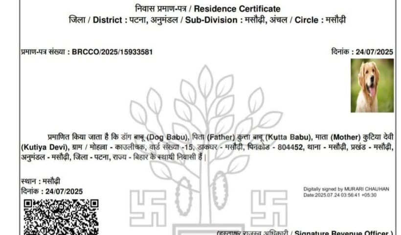 View More सरकारी पोर्टल की शर्मनाक गलती: कुत्ते के नाम बना प्रमाण पत्र, जांच शुरू