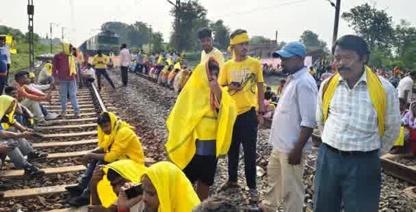 सीनी में कुडमियों का रेल रोको आंदोलन, प्रदर्शनकारियों ने हावड़ा मुंबई रेल ट्रैक किया जाम