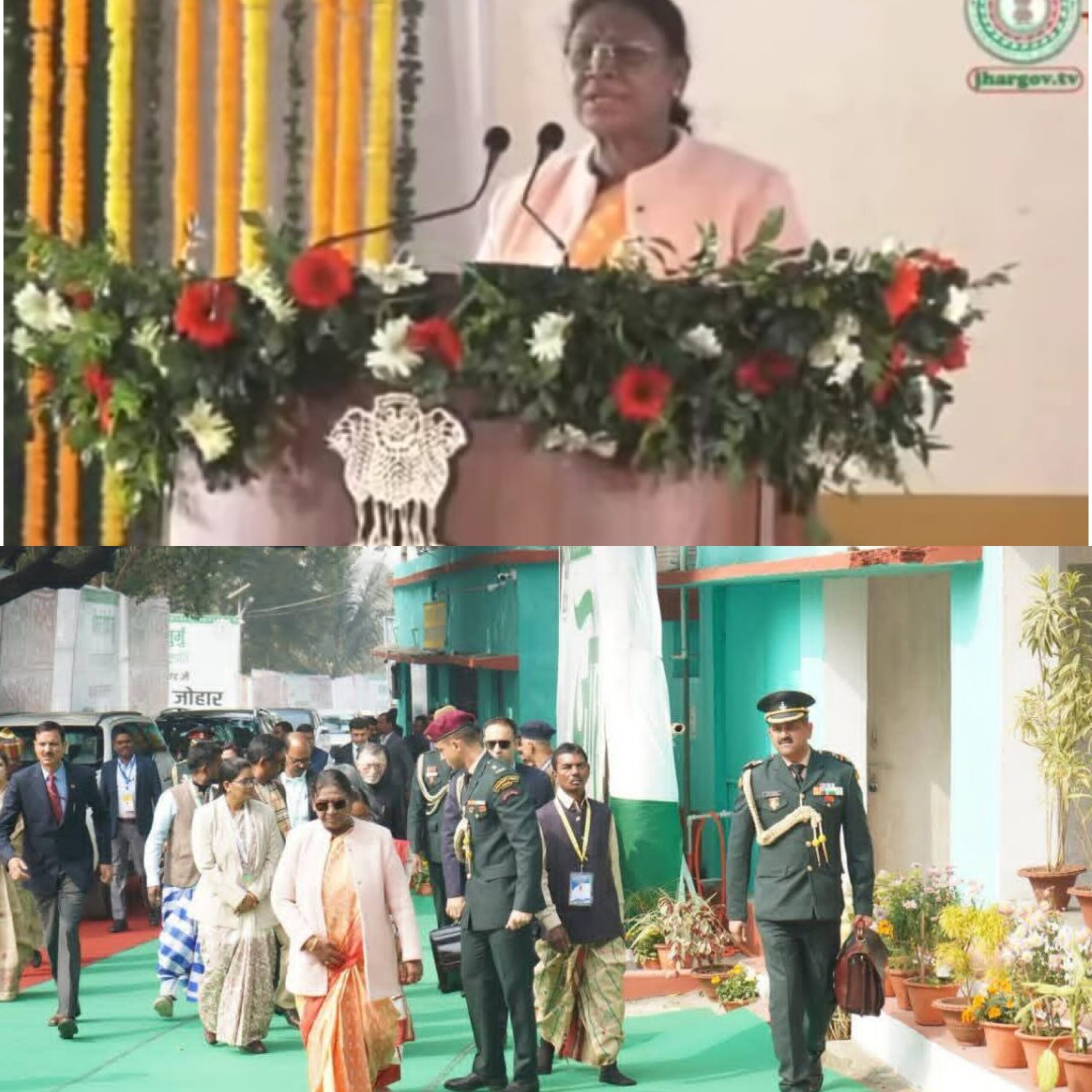 Saraikela : करनडीह स्थित दिशोम जाहेरथान प्रांगण में आयोजित ऑल इंडिया संताली राइटर्स एसोसिएशन और दिशोम जाहेरथान कमेटी के 22वें संताली परसी माहा एवं ओलचिकी शताब्दी समारोह में राष्ट्रपति द्रौपदी मुर्मू ने संताली में अपना संबोधन दिया. यहां उन्होंने कहा कि यहां आने से पहले जाहेर आयो को जोहार कर रघुनाथ मुर्मू को श्रद्धांजलि दी. राष्ट्रपति ने कहा कि हम सब जानते हैं कि संथाल में जन्म लेकर कई जगह पहुंचे है. इसमें हमारे इष्टदेव का आशीष है. उन्होंने कहा कि बचपन में मैंने नेहर गीत सीखा था. अपने संबोधन के दौरान उन्होंने संताली में नेहोर गीत गाकर अपने संबोधन की शुरुआत की. राष्ट्रपति ने ओलचिकी के शताब्दी समारोह में कहा कि ओलचिकी को जन जन तक पहुंचाने के लिए दीवार पर संताली लिपि में कलाकृतियाँ बनायें. उन्होंने कहा कि ओलचिकी के विस्तार और उत्थान में मेरा भी छोटा सा योगदान रहा है. उन्होंने कहा कि अपने बच्चों को अपनी मातृभाषा अवश्य सिखायें. एकजुट होकर इसे और समृद्ध बनाने में योगदान दें. उन्होंने कहा कि सिर्फ संताली ही नहीं हो, मुंडा, समेत सभी का उत्थान करना है. इसके लिए जो आगे रहेगा उन्हें पीछे रह गए भाषा को साथ खींच कर आगे ले आना है. राष्ट्रपति ने कहा कि देश के 75 पीवीटी ट्राइबल (पर्टिक्यूलरली वुलरेनेबल ट्राइबल ग्रुप) अभी भी पेड़ में रहते हैं. उनके घर नहीं हैं. उनके कपड़े नहीं हैं और हम लोग अमृतपाल वर्ष माना रहे हैं. आख़िरकार सरकार ने बात सुनी और बिरहोर समेत सभी आदिवासी के लिए 24 हज़ार करोड़ से उनके विकास को काम करने का मिशन शुरू किया. कहा कि ये आदिवासी नहीं जानते कि पीएम आवास बन रहे है. ये लोग यह भी नहीं जानते कि सीमेंट कहाँ से आएगा, घर कैसे बनेगा इसलिए उन्हें घर बनाकर देना होगा. राष्ट्रपति ने कहा मेरे लोग (आदिवासी) अभी भी बच्चे हैं. इन्हें पैसे का इस्तेमाल करना नहीं आता. इसलिए उन्हें पैसे नहीं दें. इन्हें घर बनाकर दें. राष्ट्रपति ने कहा लेकिन हमें भी सीखना होगा.
