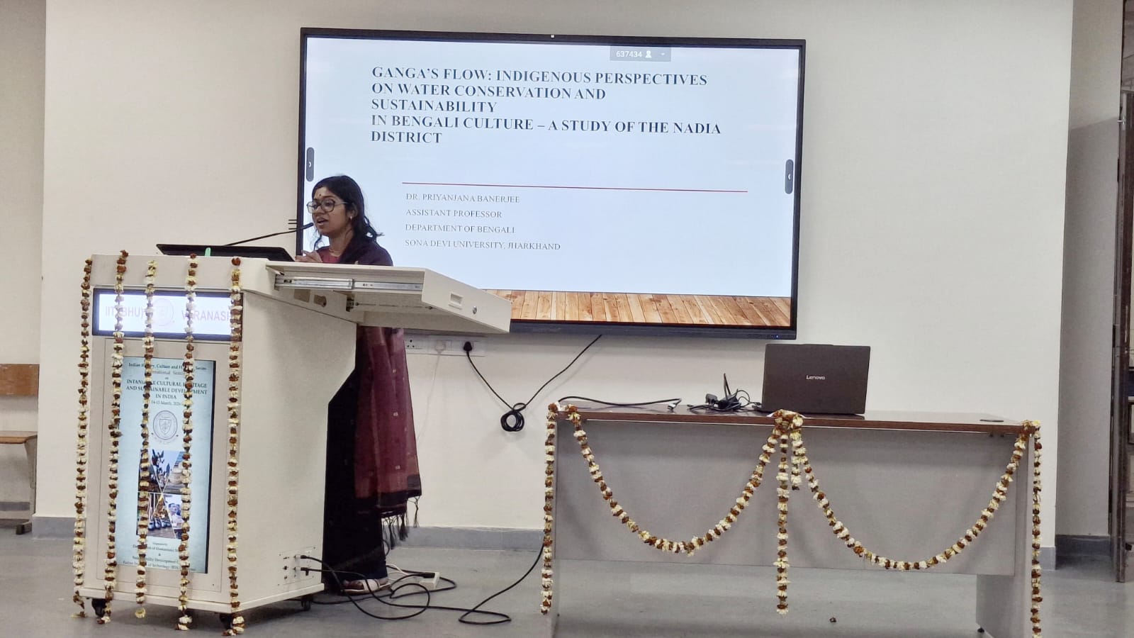 डॉ. प्रियंजना बनर्जी ने “गंगा का प्रवाह: बंगाली संस्कृति में जल संरक्षण और निरंतरता पर स्वदेशी दृष्टिकोण – नदिया ज़िले का एक अध्ययन” विषय पर अपना विश्लेषणात्मक व्याख्यान प्रस्तुत किया।