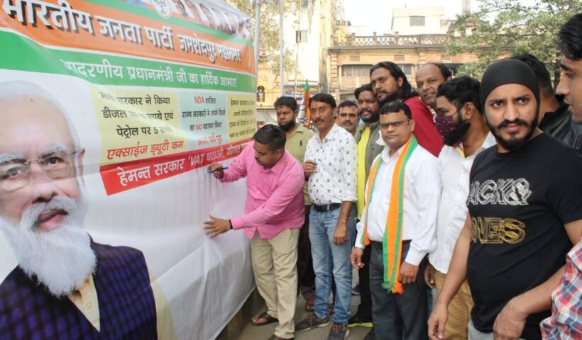 जमशेदपुर (संवाददाता ):- पिछले दिनों केंद्र की मोदी सरकार ने पेट्रोल-डीजल पर एक्साइज ड्यूटी घटाकर जनता को बड़ी राहत दी। परंतु प्रदेश की हेमंत सरकार…