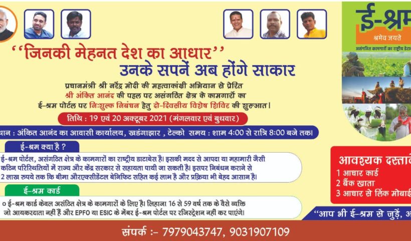 जमशेदपुर (संवाददाता ):-शिक्षा सत्याग्रह संस्था की पहल पर खड़ंगाझार में मंगलवार से ई-श्रम के तहत पंजीयन के लिए दो-दिवसीय निःशुल्क शिविर का आयोजन निर्धारित है।…