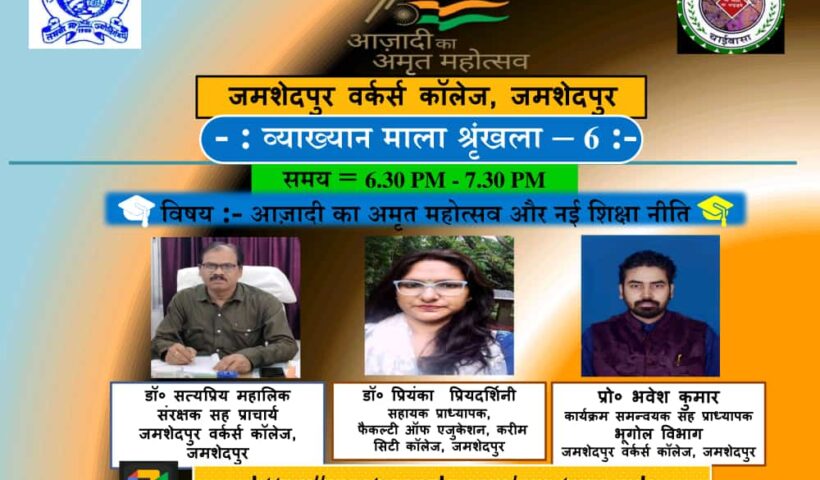 नई शिक्षा नीति रोजगार परक शिक्षा हेतु अत्यंत प्रासंगिक – डॉ प्रियंका जमशेदपुर (संवाददाता ):-वर्कर्स कॉलेज, जमशेदपुर द्वारा आजादी का अमृत महोत्सव बड़े धूम-धाम से…