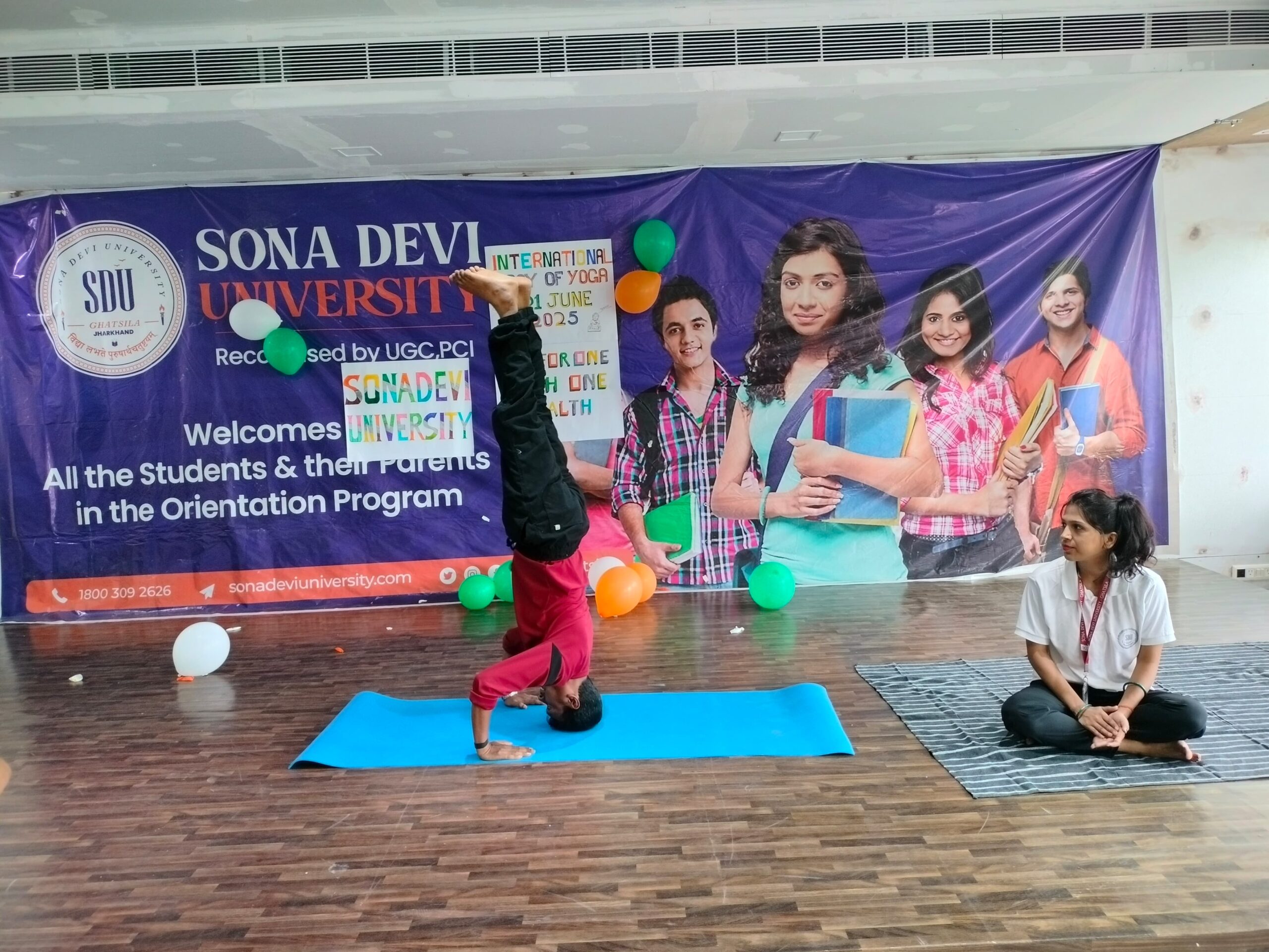 घाटशिला / जमशेदपुर :- सोना देवी विश्वविद्यालय घाटशिला में आज 11 वे अंतर्राष्ट्रीय योग दिवस के अवसर पर यहां के फैकल्टी ने सबेरे 6.30 से 7.45 तक योगाभ्यास किया. योगा फॉर वन अर्थ वन हेल्थ थीम पर आयोजित योग संगम का आयोजन युवा कार्यक्रम एवं खेल मंत्रालय भारत सरकार तथा राष्ट्रीय सेवा योजना के निर्देश के आलोक में किया गया. सोना देवी विश्वविद्यालय को कुछ दिन पहले ही सरकार से राष्ट्रीय सेवा योजना की एक ईकाई शुरू करने की अनुमति मिली है. आज देशभर में दस हजार से अधिक स्थानों पर लोगों ने योगाभ्यास किया. प्रधानमंत्री नरेंद्र मोदी ने आज विशाखापत्तनम में योगाभ्यास किया. केंद्र सरकार के प्रयास से संयुक्त राष्ट्र महासभा द्वारा 21 जून को अंतर्राष्ट्रीय योग दिवस के रूप में घोषित किया गया. आज ग्यारहवां अंतर्रराष्ट्रीय योग दिवस मनाया जा रहा है. सोना देवी विश्वविद्यालय की योग प्रशिक्षक कोमल सिन्हा ने बताया कि नियमित योगाभ्यास जीवन के सभी पहलुओं में संतुलन बनाने के काम आता है. नियमित योगाभ्यास के कई फायदे हैं. इससे विद्यार्थीयों को ध्यान लगाने तथा मानसिक एकाग्रता हासिल करने में मदद मिलती है. तनाव कम होता है तथा शारीरिक और मानसिक स्वास्थ्य में सुधार होता है. रोगप्रतिरोधक क्षमता में सुधार होता है. इसलिए विद्यार्थी सफलता प्राप्त करना चाहते हैं तो उन्हें नियमित रूप से योगाभ्यास करना चाहिए.